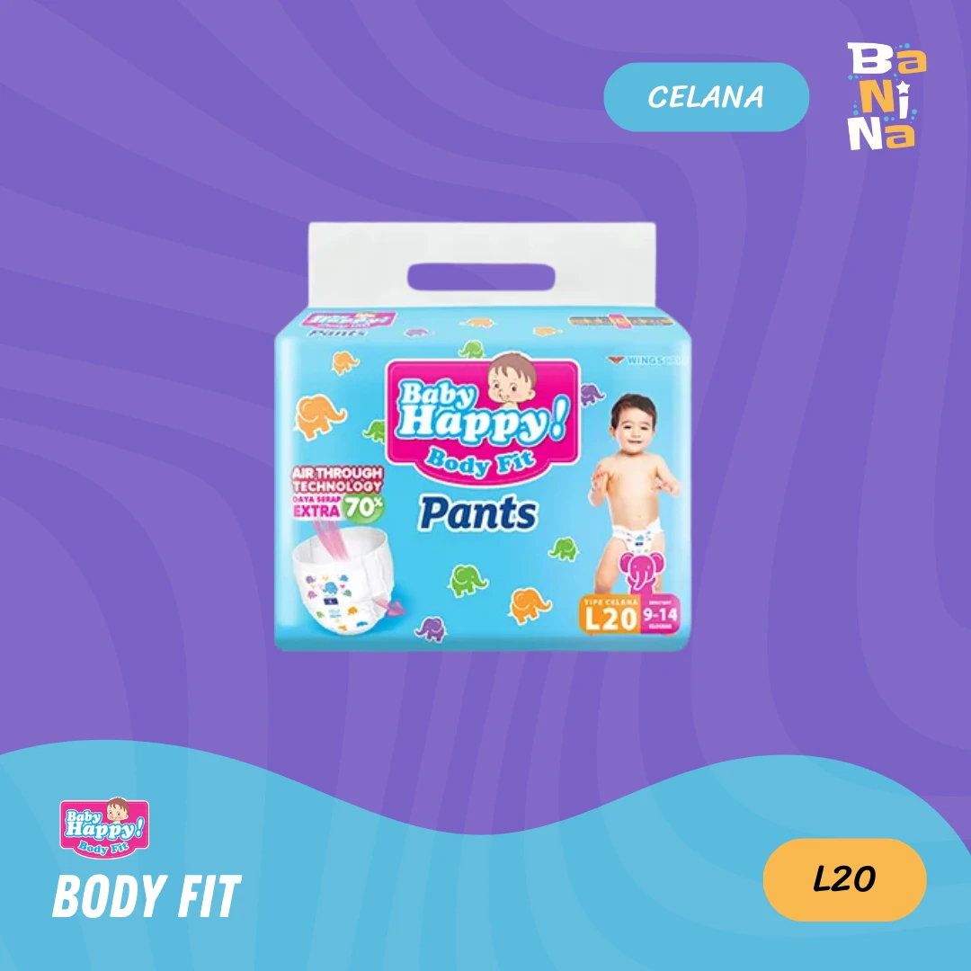 Baby Happy Body Fit Pants L20 terbuat dari bahan berkualitas. Menggunakan overlap technology menjadikan bagian pinggang yang bersentuhan dengan kulit bayi selalu nyaman tanpa iritasi, serta terdapat sirkulasi udara yang menjadikan popok tidak panas, sehingga kulit bayi tidak lembap dan bebas ruam. Untuk melepasnya, hanya perlu merobek bagian pinggir popok.