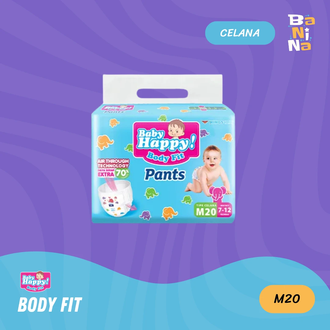 Baby Happy Body Fit Pants M20 terbuat dari bahan berkualitas. Menggunakan overlap technology menjadikan bagian pinggang yang bersentuhan dengan kulit bayi selalu nyaman tanpa iritasi, serta terdapat sirkulasi udara yang menjadikan popok tidak panas, sehingga kulit bayi tidak lembap dan bebas ruam. Untuk melepasnya, hanya perlu merobek bagian pinggir popok.