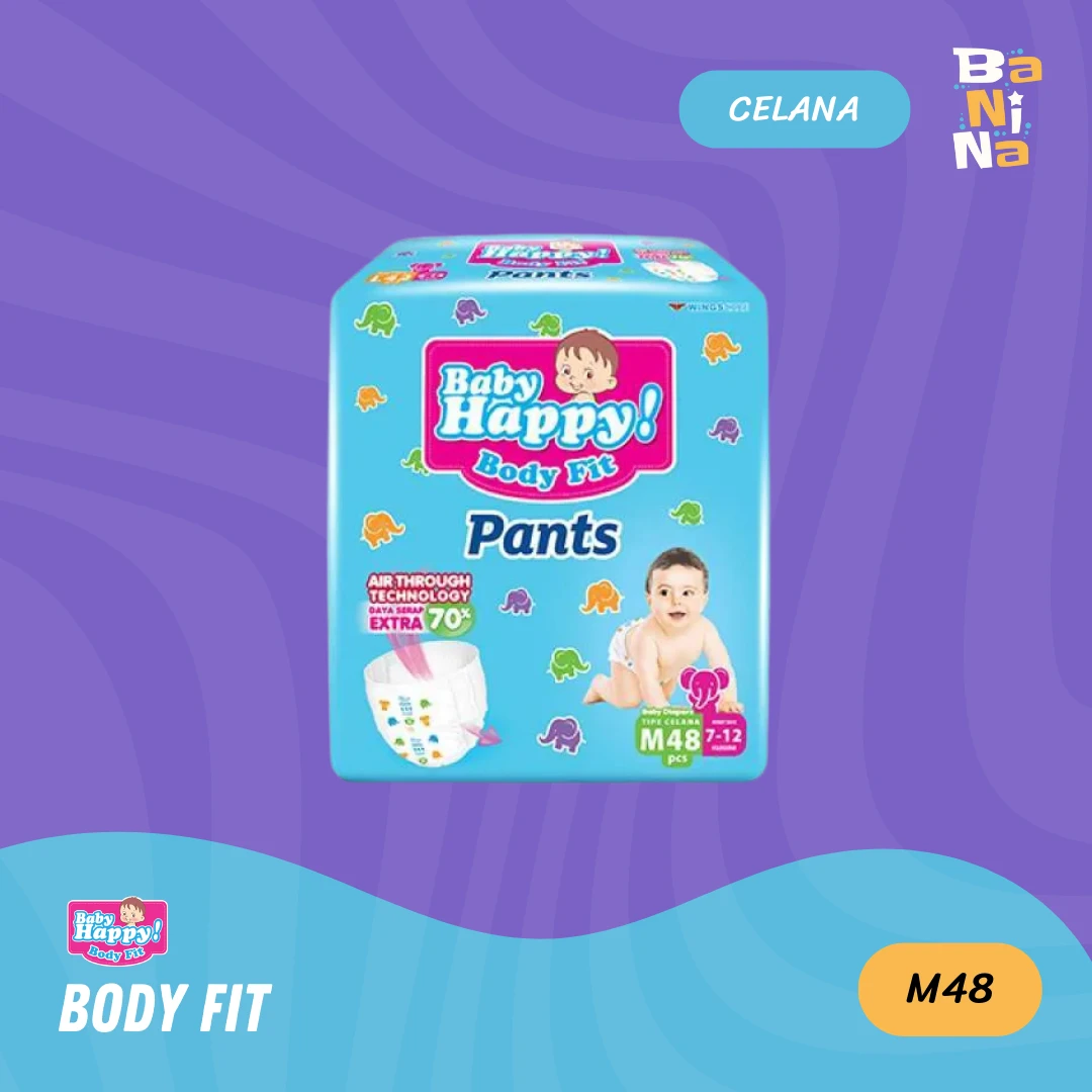 Baby Happy Body Fit Pants M48 terbuat dari bahan berkualitas. Menggunakan overlap technology menjadikan bagian pinggang yang bersentuhan dengan kulit bayi selalu nyaman tanpa iritasi, serta terdapat sirkulasi udara yang menjadikan popok tidak panas, sehingga kulit bayi tidak lembap dan bebas ruam. Untuk melepasnya, hanya perlu merobek bagian pinggir popok.