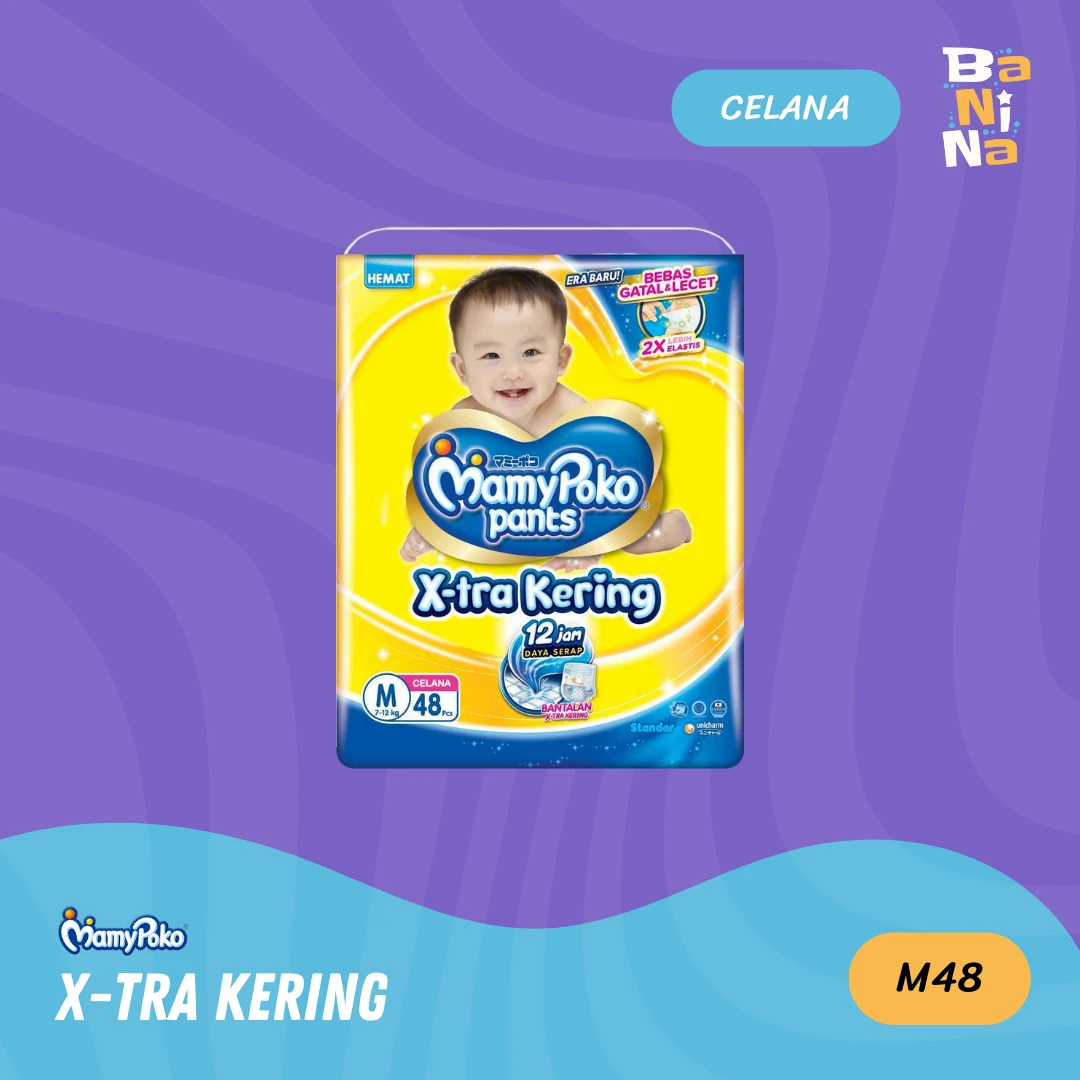 MamyPoko X-tra Kering M48 merupakan pilihan tepat untuk memberikan perlindungan optimal bagi si Kecil. Popok ini dirancang dengan daya serap tinggi yang mampu menjaga kekeringan hingga 12 jam, dilengkapi bantalan X-tra Kering yang menyerap cepat dan menyebarkan pipis secara merata, sehingga kulit si Kecil tetap sehat dan kering sepanjang hari. MamyPoko Pants X-tra Kering merupakan pilihan ideal untuk kenyamanan dan kebahagiaan bayi Anda.