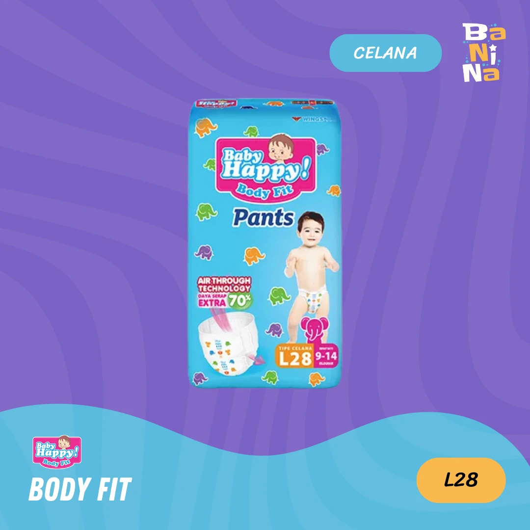 Baby Happy Body Fit Pants L28 terbuat dari bahan berkualitas. Menggunakan overlap technology menjadikan bagian pinggang yang bersentuhan dengan kulit bayi selalu nyaman tanpa iritasi, serta terdapat sirkulasi udara yang menjadikan popok tidak panas, sehingga kulit bayi tidak lembap dan bebas ruam. Untuk melepasnya, hanya perlu merobek bagian pinggir popok.