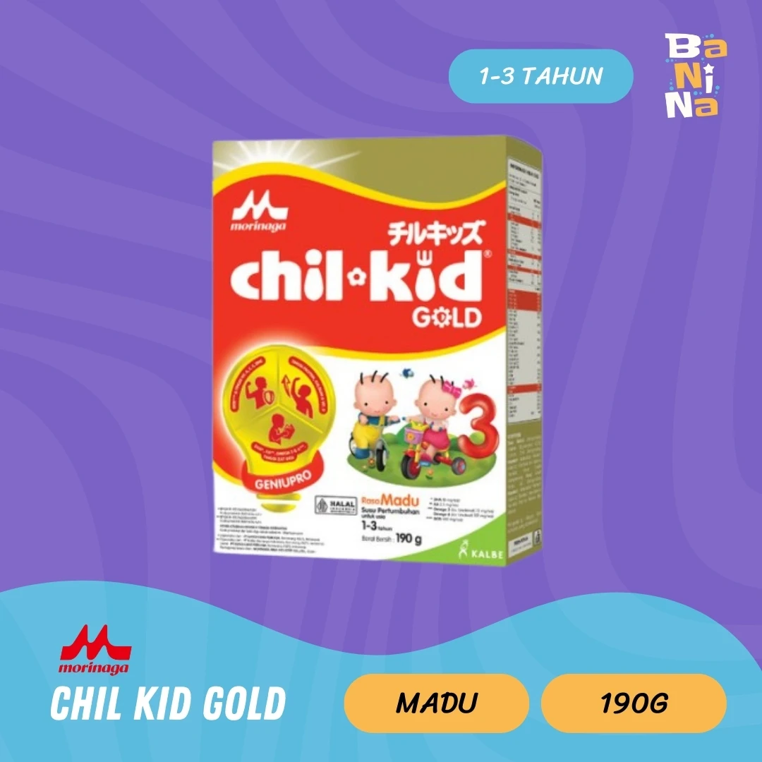 Morinaga Chil Kid 3+ susu pertumbuhan untuk anak. Memiliki kandungan Lebih Tinggi Zat Besi, AA & DHA untuk meningkatkan kemampuan berpikir, daya tangkap, dan daya ingat Si Kecil, Lebih Rendah Gula sehingga dapat mencegah karies gigi dan obesitas, Lebih Tinggi Protein, Kalsium, serta Vitamin D untuk tumbuh kembang optimal.